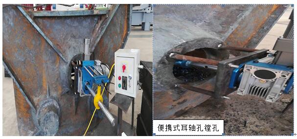 鐵水包鋼包中間包渣罐等冶金專用敞口容器類設備在使用一定時間后耳軸都會有不同程度的磨損,根據(jù)煉鋼煉鐵安全使用規(guī)范的要求,需要定期對耳軸進行探傷檢驗,檢驗不合格需要對耳軸進行拆除更換,傳統(tǒng)的更換方式需要將敞口容器運輸至大型落地鏜等加工廠進行耳軸孔的鏜制,由于敞口容器的體積較大,運輸成本很高,導致修復的經(jīng)濟性不好。近些年也有些企業(yè)采用現(xiàn)場維修的方式進行現(xiàn)場修復,但是通常采用的是將耳軸火焰切割下來后直接根據(jù)耳軸孔的名義尺寸直接配置耳軸,這樣達到了現(xiàn)場更換耳軸的目的,但是經(jīng)過維修后的耳軸與耳軸孔之間沒有了過盈配合量,與新制的敞口容器相比使用安全性大大降低。而我公司采用便攜式鏜孔設備在現(xiàn)場進行精加工,滿足更換的新耳軸和耳軸孔之間的過盈量。裝配效果等同新制敞口容器一樣。罐體修復我們采用罐壁自動切割機配合環(huán)縫自動焊接機,罐體修復后在罐體丁字口及環(huán)口焊縫的焊接質量是可以100%UT探傷合格。特點:現(xiàn)場高精度修復,性價比高,質量等同于新制產(chǎn)品。